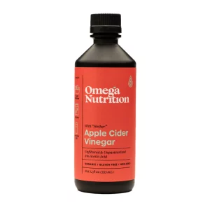 Omega Nutrition’s Apple Cider Vinegar with “Mother”, is made in the USA and is certified organic. 12 oz.