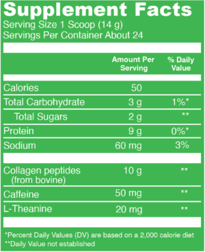 Due to the presence of collagen, regularly taking this supplement helps to support healthy hair, skin, nails, bones and joints. 10.5 oz powder.