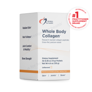 90 servings.Whole Body Collagen™ contains a unique blend of three patented collagen peptides supported by clinical research showing their efficacy for supporting collagen production, bone strength, joint health and integrity, skin elasticity and more. 10 packets.