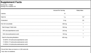 OmegaPure PRM features highly concentrated fish oil with a standardized quantity of the pro-resolving mediators (PRMs) 18-HEPE, 17-HDHA, and 14-HDHA. 60 softgels. This product is usually shipped without ice. If you would like to add an ice pack to your order, CLICK HERE.