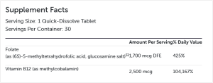 Biologically Active Folate and B12. 30 tablets.